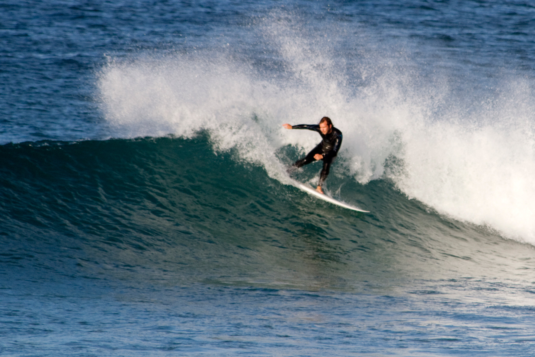 Foto: Manuel ALonso surfeando largas derechas. Así se presentaba Razo esta tarde de viernes 11-11-2011 con una tarde soleada. Mañana…