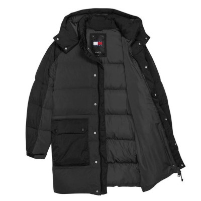 La chaqueta con capucha Tommy Jeans Vail Puffer Parka es una prenda imprescindible para el invierno. Confeccionada con un tejido resistente y cierre de cremallera, esta chaqueta larga cuenta con detalles de borreguito en el cuello y el logo de Tommy en el pecho.