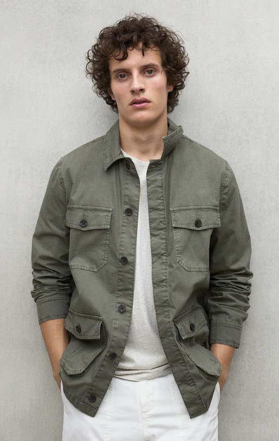 La chaqueta Sahara está con 34% algodón reciclado. Con su clásico cuello de camisa, combina comodidad y estilo, ideal para un look casual y moderno. La parte de algodón no reciclado proviene del programa www.eucotton.eu, consistente en una alianza de productores de algodón españoles y griegos mediante prácticas de cultivo respetuosas con el medio ambiente.
