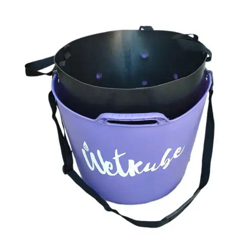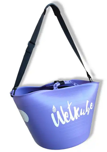Wetkube es un cubo diseñado para cambiarse, transportar el traje mojado y, además, para ayudar a acelerar el secado gracias a un compartimento interior que evita el contacto del traje con el agua escurrida.