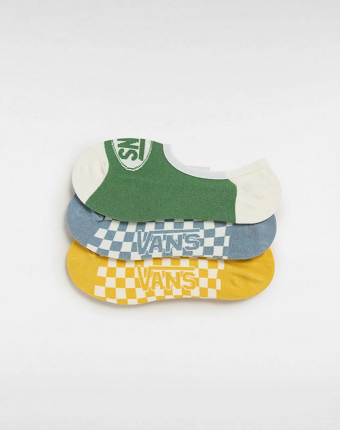 Un pack de tres pares de calcetines invisibles Buggin Out Canoodle, caracterizados por unos diseños tan salvajes como llamativos, inspirados en el estilo urbano, y con logotipos de Vans® en jacquard en los laterales.