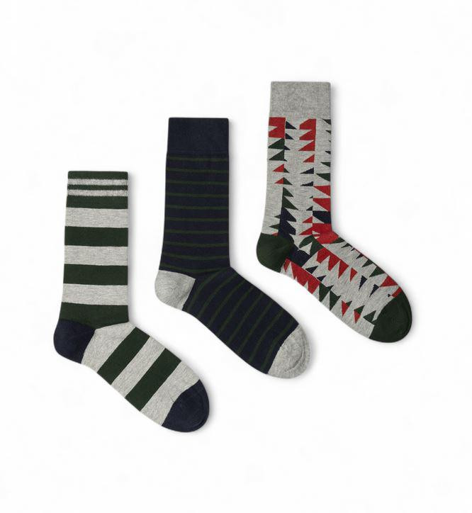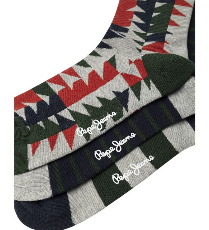 Pack de 3 pares de calcetines GEO TREE CR, perfectos para el día a día. Diseñados con una mezcla de estampados gráficos y detalles deportivos, combinan estilo y funcionalidad.