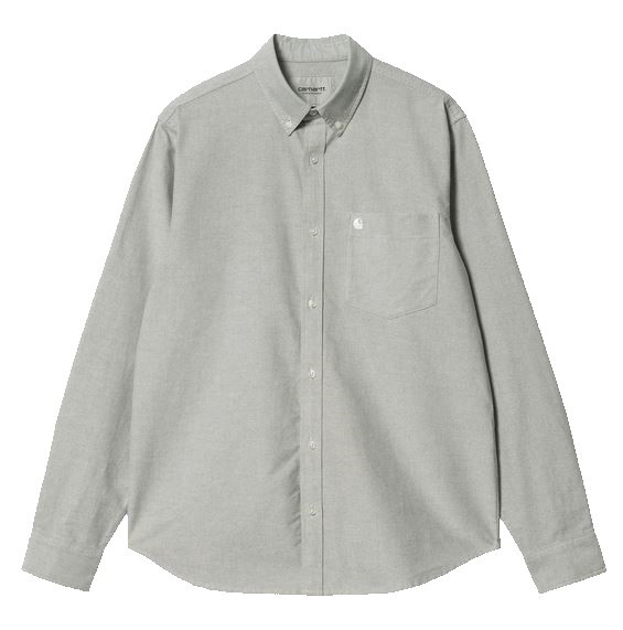 La L/S C-Logo Shirt es una camisa abotonada confeccionada en algodón Oxford ligero que se ha teñido en hilo para otorgarle un color más intenso y duradero. Además, se ha lavado en prenda para darle un tacto más suave. La prenda tiene un corte regular y está adornada con un bolsillo y un sutil logotipo de “C” de Carhartt WIP bordado en el pecho.