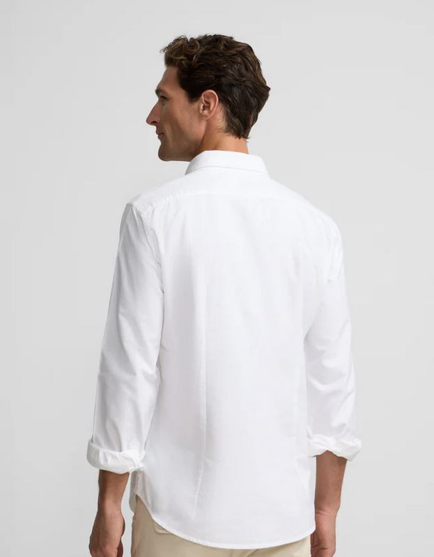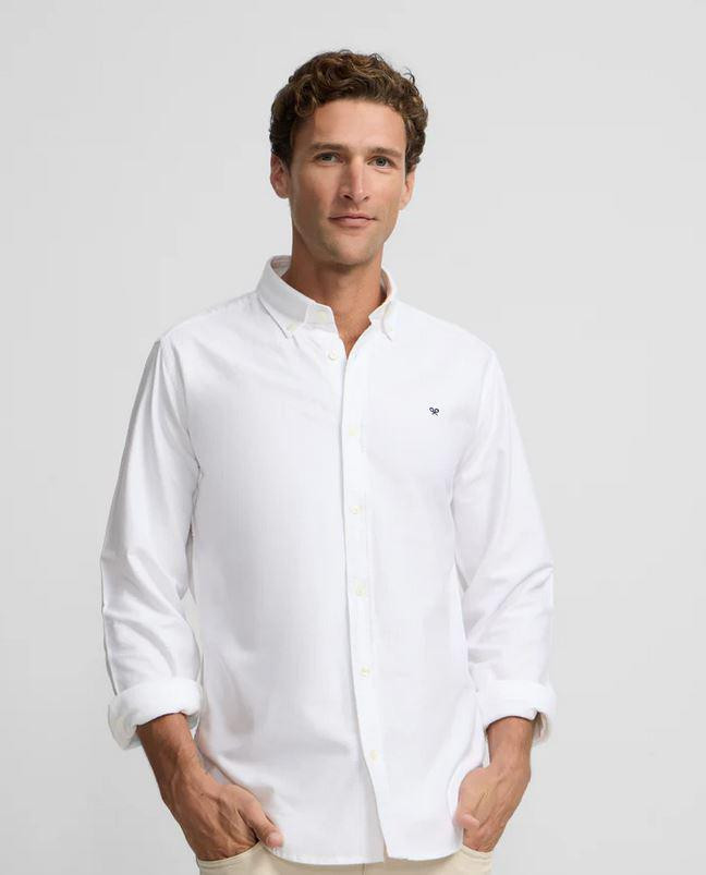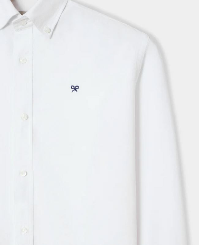 Camisa oxford confeccionada en 100% algodón de corte Slim fit. Presenta cuello button down, cierre con botones personalizados y manga larga de puño con botones. Cuenta con raquetas bordadas en el torso.