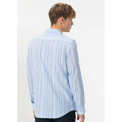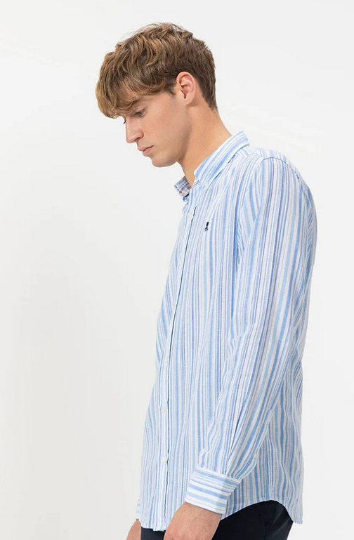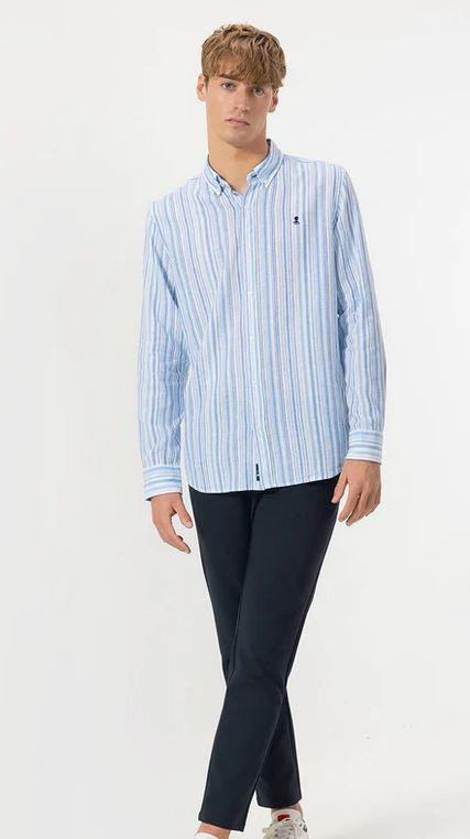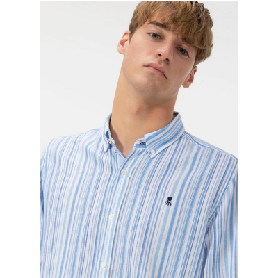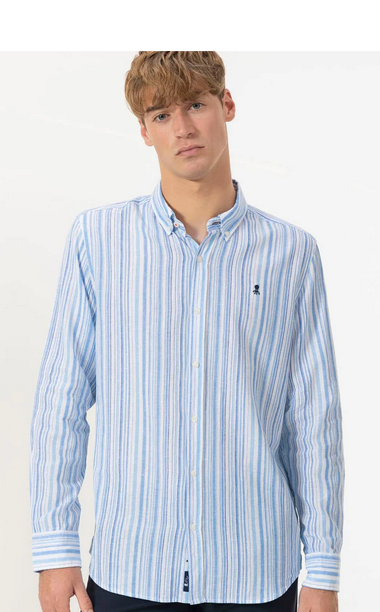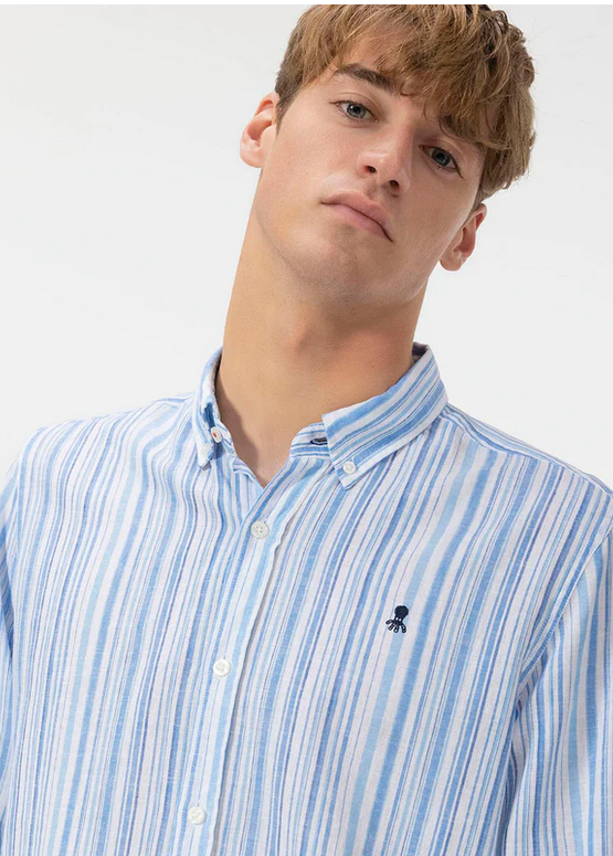 Camisa El Pulpo Cuello Botón Lino Para Hombre