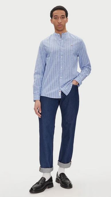 Camisa Tommy Hilfiger Lino Cuello Mao Para Hombre