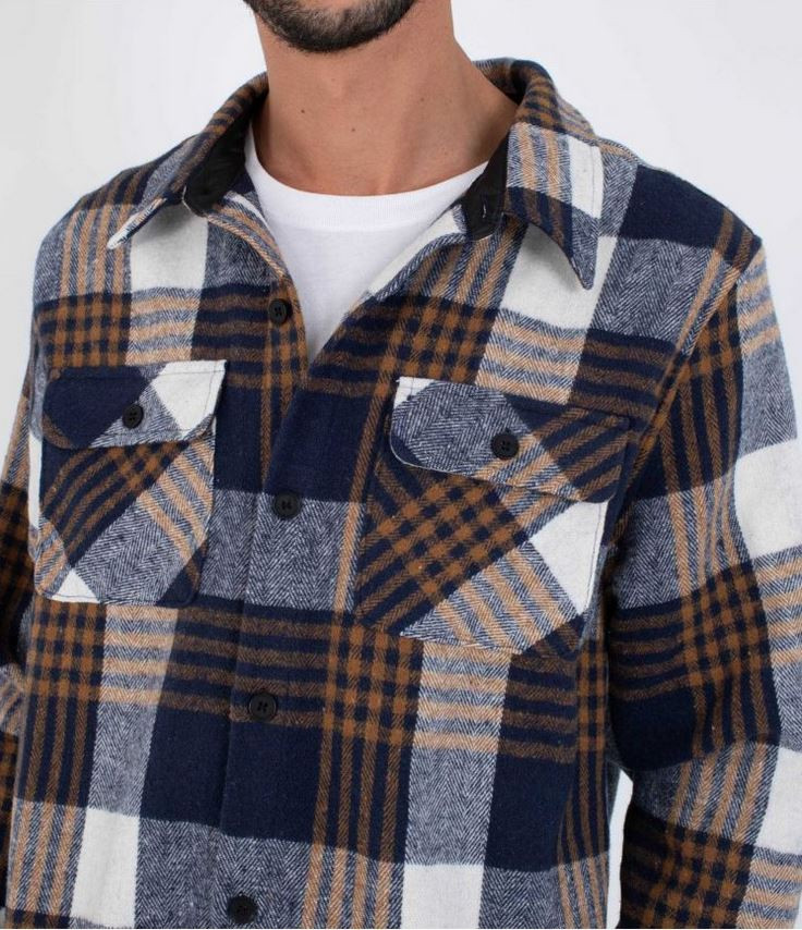 Camisa de franela gruesa que brinda calor y durabilidad, ideal para días fríos o looks en capas. Con cierre clásico de botones y dos bolsillos en el pecho para utilidad y estilo atemporal. Su tejido resistente y silueta ajustada ofrecen comodidad todo el día, ya sea en una caminata, un plan de fin de semana o para un toque robusto diario.