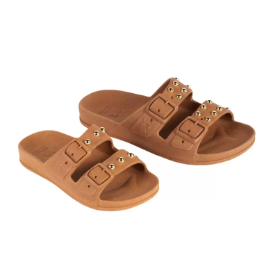 ¿Buscas una sandalia con aire rockero? ¡Descubre la Florianopolis! Esta sandalia para mujer es en realidad una sandalia con tachuelas que sacará a relucir tu incipiente lado rockero. Disfruta de la originalidad de esta sandalia para mujer en camel.