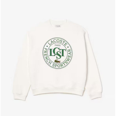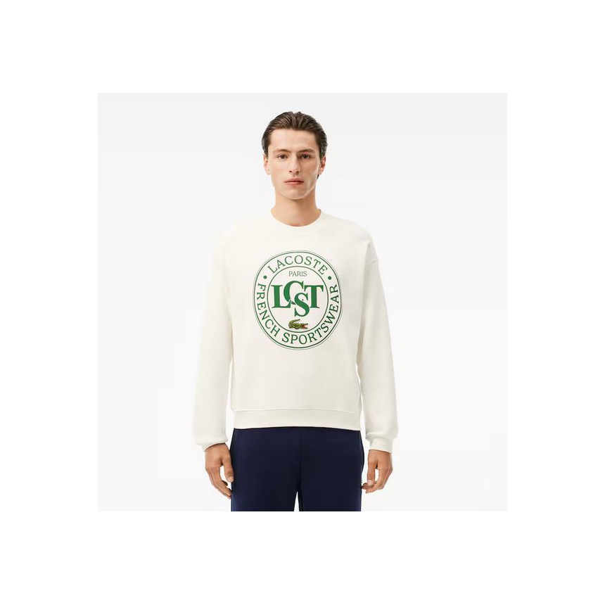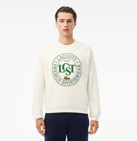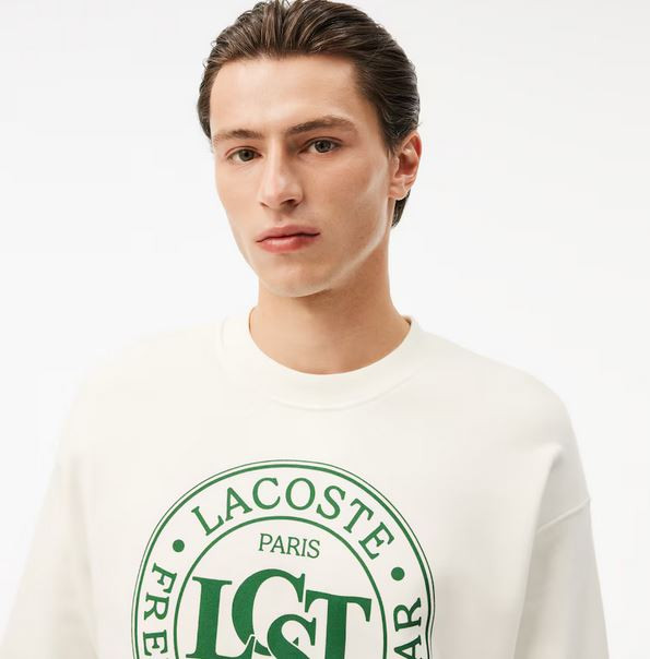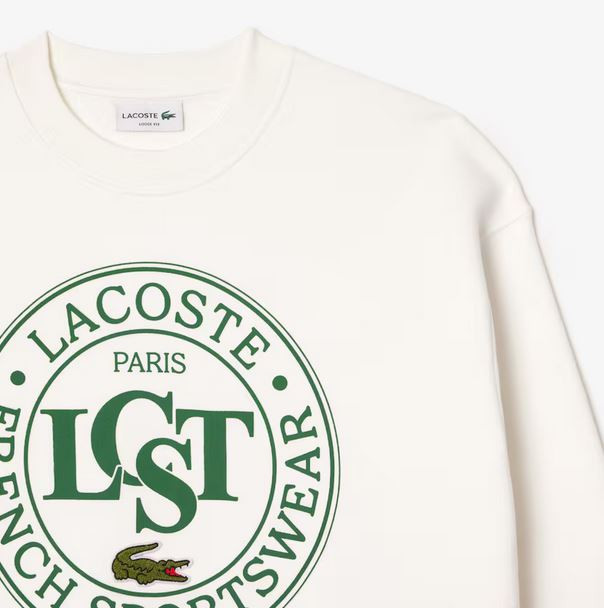 Esta sudadera es una lección en los códigos del cocodrilo de Lacoste, creadores de ropa deportiva desde 1933. Confeccionada en un tejido de felpa cómodo y grueso, con un corte generoso y complementada con un gran estampado central donde están representados todos los detalles más emblemáticos de nuestra marca.