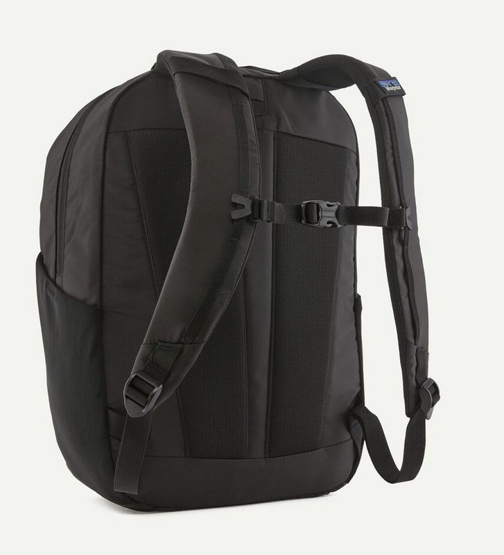 Todos los tejidos, la malla espaciadora y la malla estática son 100 % reciclados (la malla elástica es 72 % reciclada), y el tejido del cuerpo tiene un acabado DWR (repelente al agua duradero) fabricado sin añadir PFAS de forma intencionada; el volumen de la mochila es de 20 litros.