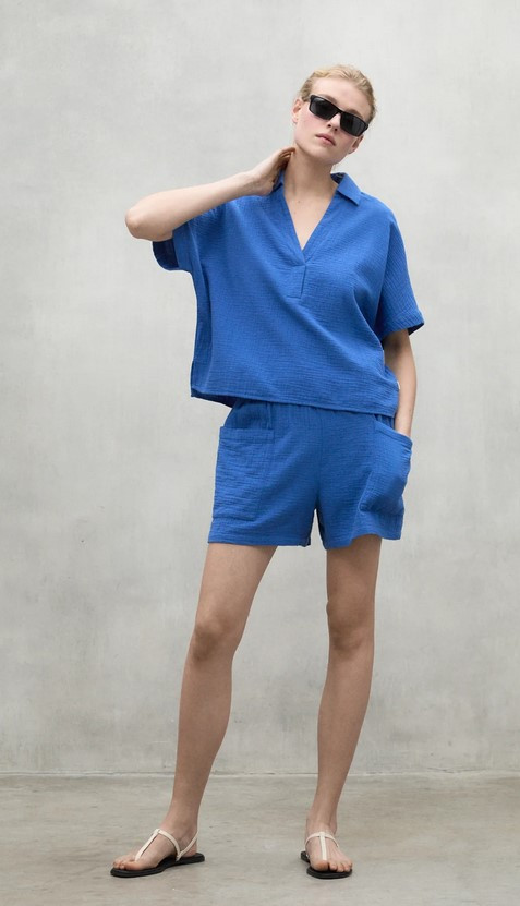 Después de años de investigación y desarrollo, logramos crear Bambula con nuestro algodón reciclado, obteniendo una textura orgánica y suave que eleva tanto el confort como la sostenibilidad. Confeccionados con un 80% de algodón orgánico y un 20% de algodón reciclado, los shorts Yera ofrecen una sensación ligera y transpirable, perfecta para el verano. Diseñados para la versatilidad, cuentan con una cintura elástica para mayor comodidad y bolsillos parche, que aportan un toque relajado pero sofisticado, fáciles de combinar para cualquier ocasión.