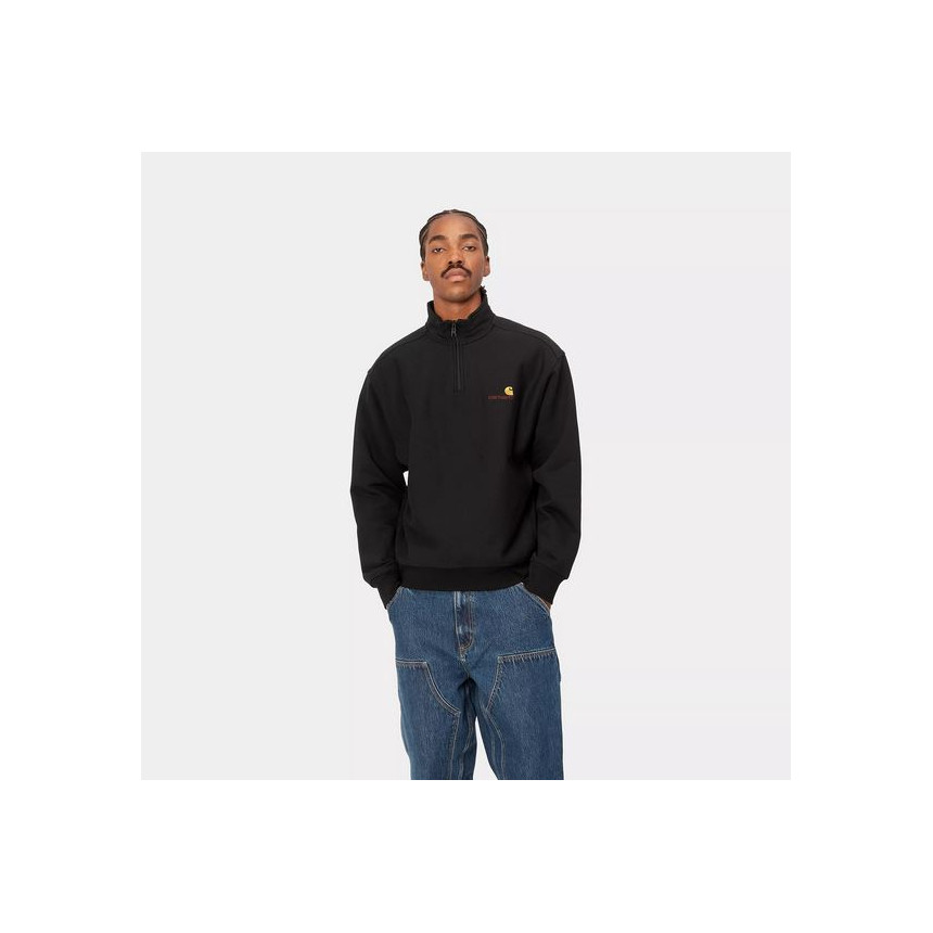 La Half Zip American Script Sweatshirt está confeccionada con una mezcla de algodón y poliéster de 12,3 onzas peinado para mayor suavidad y calidez sin perder transpirabilidad. La prenda incluye cuello alto con cremallera y un pequeño logotipo. Con una silueta amplia y holgada.