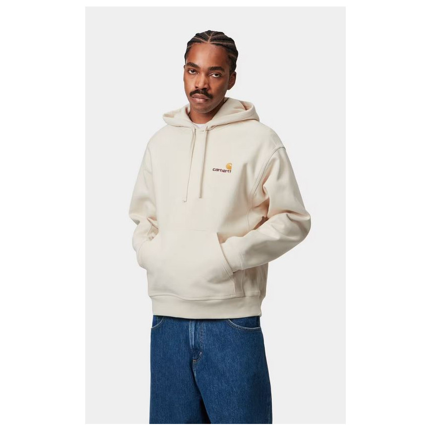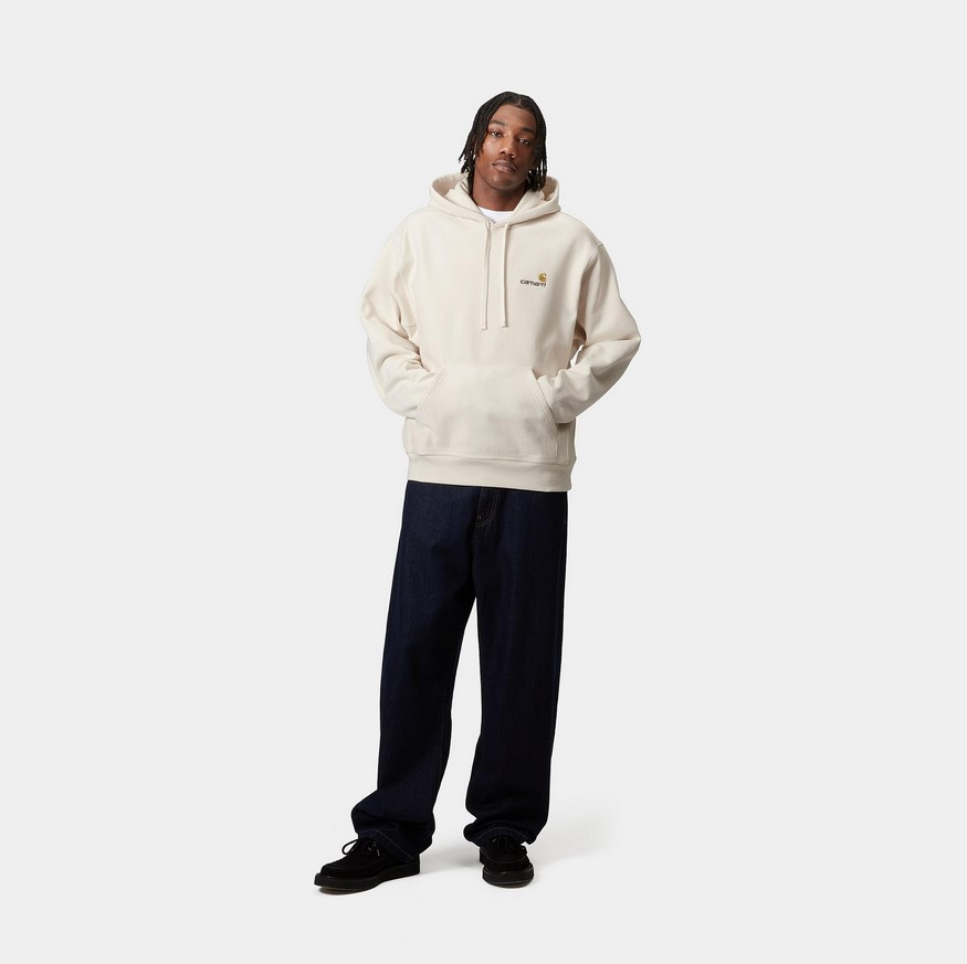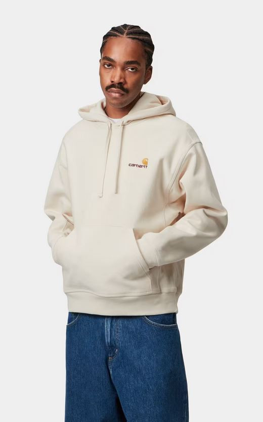 La Hooded American Script Sweatshirt está confeccionada con una mezcla de algodón y poliéster peinado para mayor suavidad y calidez sin perder transpirabilidad. Incluye un bolsillo canguro. Esta prenda tiene una silueta amplia y holgada.