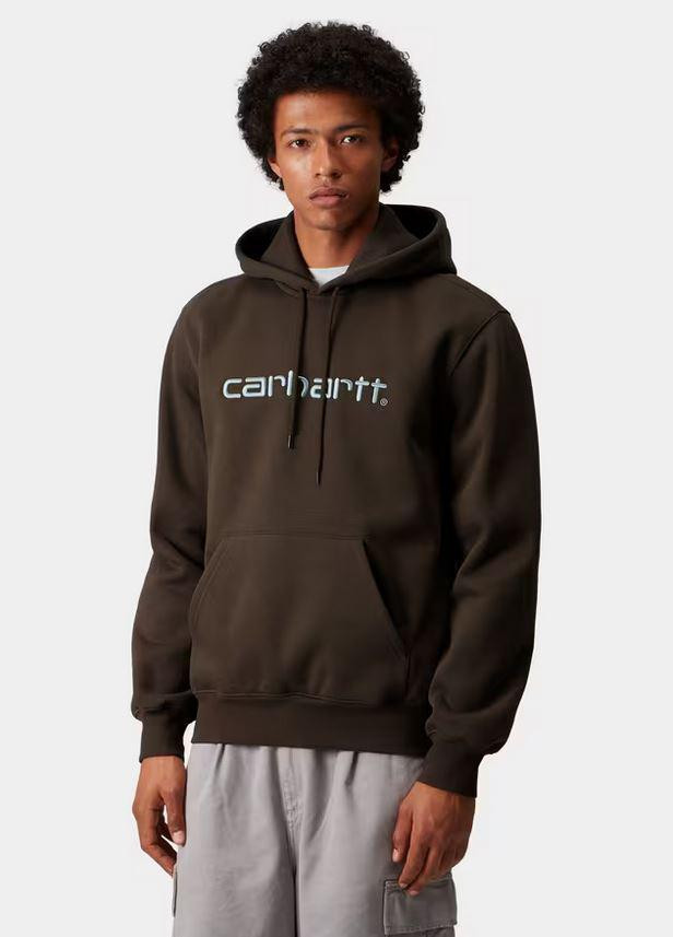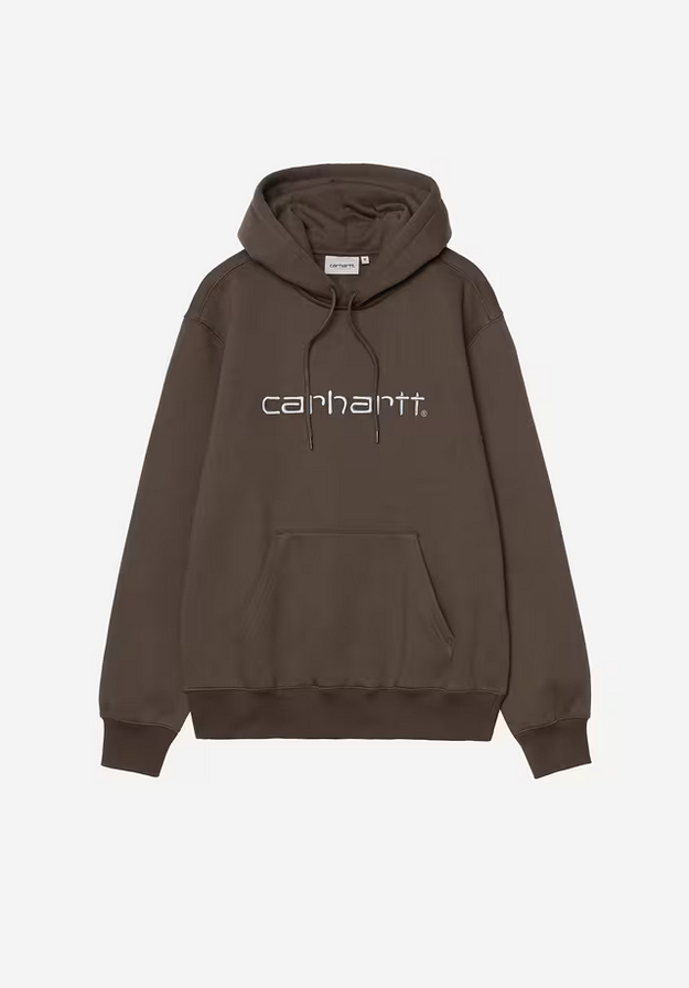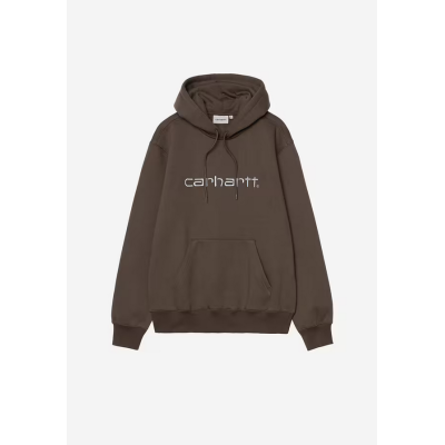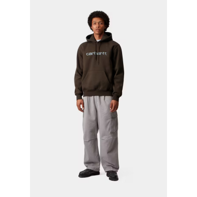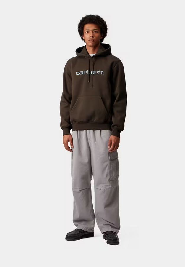 La Hooded Carhartt Sweatshirt está confeccionada con una mezcla de algodón y poliéster de 13 onzas peinado para mayor suavidad y calidez sin perder transpirabilidad. La prenda también incluye el logotipo de texto de Carhartt en la parte delantera y un bolsillo canguro. Con una silueta amplia y holgada.